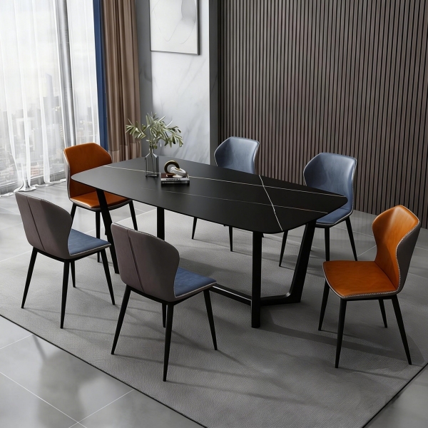哑光劳伦黑金岩板台面+黑砂碳素钢架