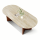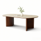 12MM洞石岩板+18MM全托底板+多层实木弯板贴皮桌腿