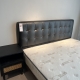 头层牛皮接触面+实木床边+高密度海绵+10公分钢木排骨架+18公分五金脚
