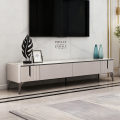 香奈儿岩板台面+E1级板材贴科技膜柜体+实木抽屉+不锈钢脚