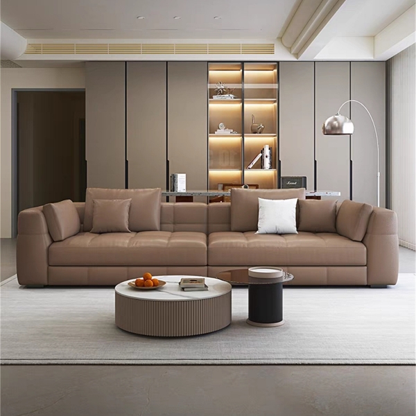 全头层中厚牛皮+高密度回弹海绵加羽绒填充+俄罗斯松木内架+不锈钢脚