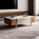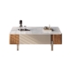 雅典玉白微晶石台面+E1级板材贴贴科技木膜柜体+抽屉环板板贴皮+不锈钢脚