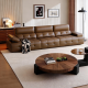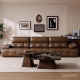 接触面头层真皮+高回弹海绵+靠背羽绒填充+实木内框+塑钢脚