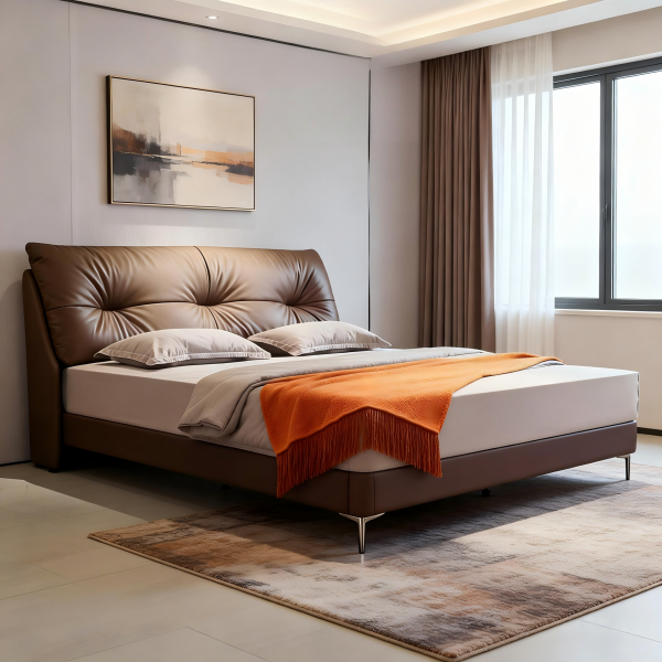 接触面头层真皮+全实木框架+高密度回弹海绵+羽绒填充+10公分钢木排骨架+13公分碳素钢五金脚