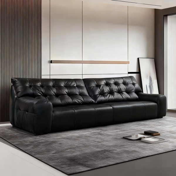 接触面中厚头层牛皮+高密度回弹海绵+公仔棉+实木框架+五金脚