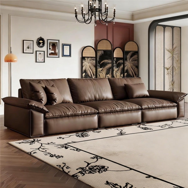 接触面中厚生态真皮+实木内框+高密度海绵+羽绒座包填充+实木脚