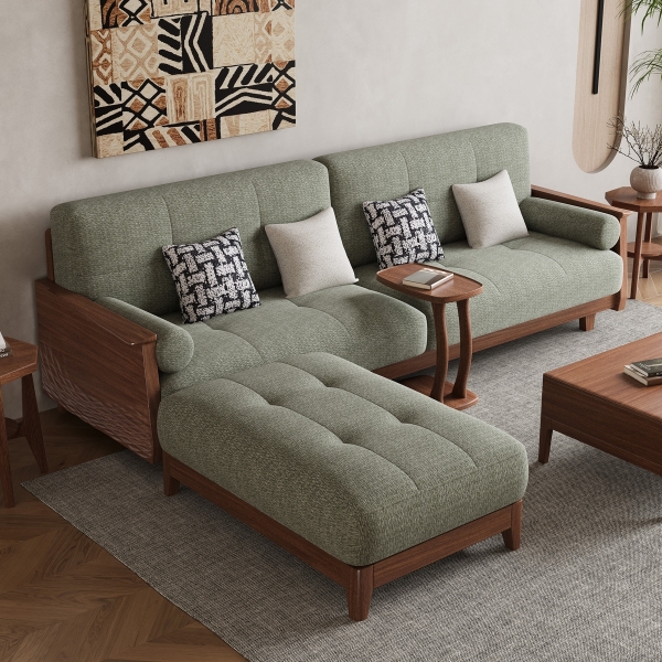 棉麻布面料+进口胡桃木架+实木多层板辅材+高密度海绵