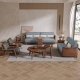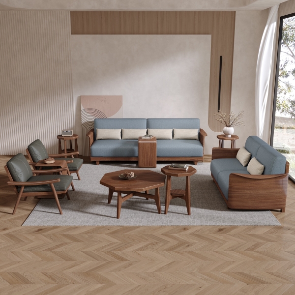 棉麻布面料+进口胡桃木架+实木多层板辅材+高密度海绵