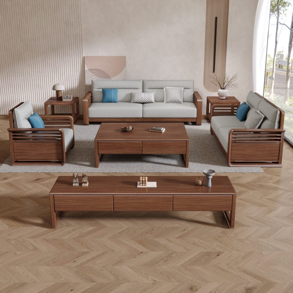 棉麻布面料+进口胡桃木架+实木多层板辅材+高密度海绵