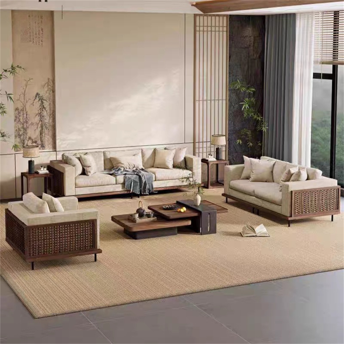 主材乌金木+辅材多层板贴乌金木皮+超纤皮软包